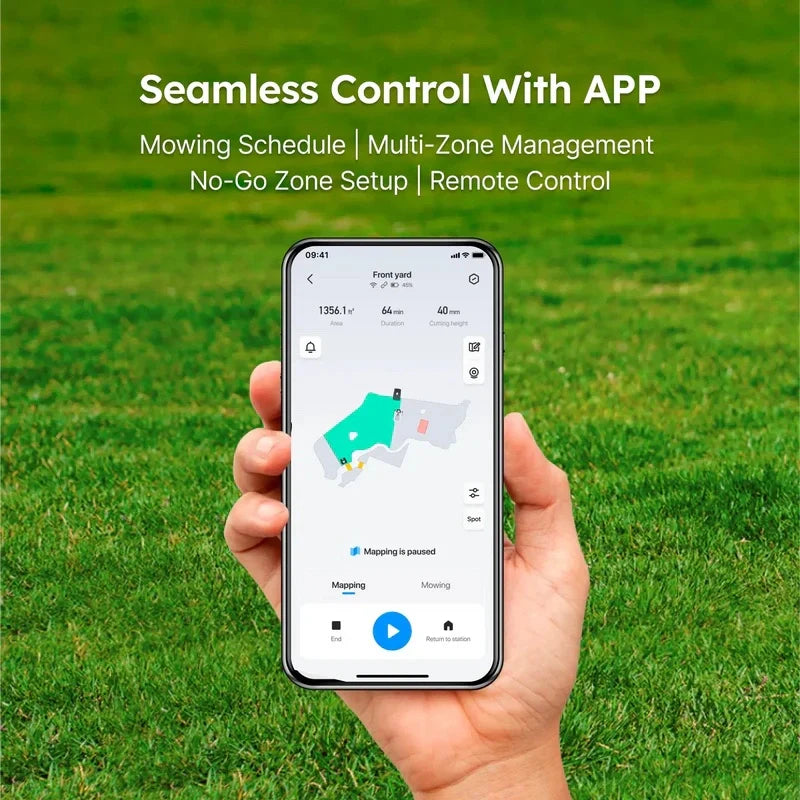 Prenez le contrôle total de votre robot tondeuse grâce à l’application dédiée. Réglez la hauteur de coupe. planifiez vos sessions. délimitez des zones interdites et personnalisez votre expérience d’entretien en quelques clics.